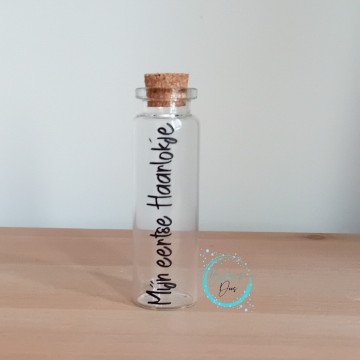 Bewaar het eerste haarlokje, navelstreng of melktandjes van uw kindje in dit leuke glazen buisje. Het buisje wordt afgesloten met een kurk.