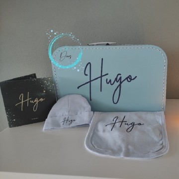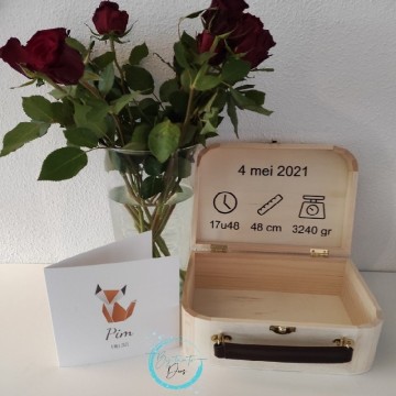Personaliseer het koffertje bv voor een geboorte cadeau, bij een babyshower of een verjaardag.