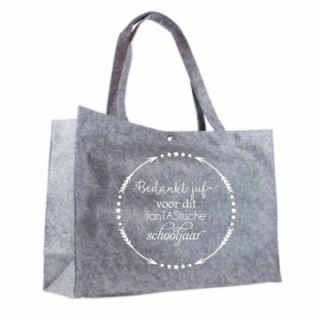 De vilten draagtassen worden keer op keer hergebruikt als boodschappentas, boekentas of strandtas.