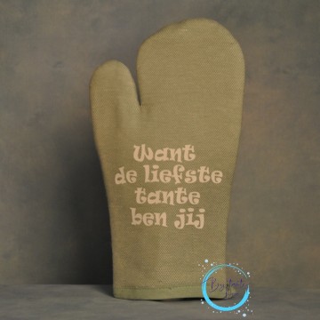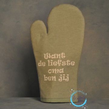 Welke Mama, Oma, Tante, Zus zou niet blij van worden van een ovenwant met de tekst De liefste is toevallig wel die van mij.