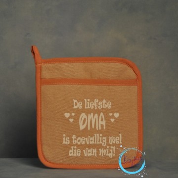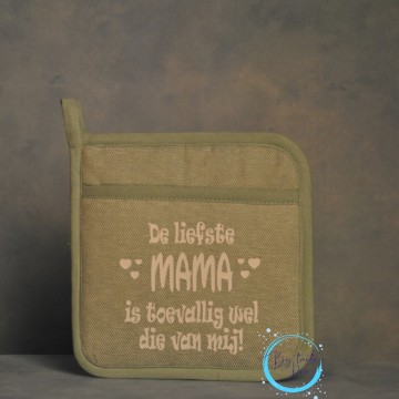 Welke Mama, Oma, Tante, Zus zou niet blij van worden van een ovenwant met de tekst De liefste is toevallig wel die van mij.