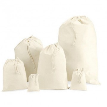 Met een inhoud van 1 liter, 3liter, 8 liter, 14 liter en 38 liter en is voorzien van een dubbele koordsluiting van touw.