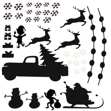 De set Kerstmis bestaat uit 1 vel herbruikbare statische raamfolie met de afmetingen van 30cm x 45cm