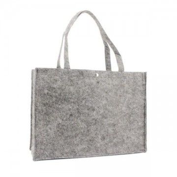 De vilten draagtassen worden keer op keer hergebruikt als boodschappentas, boekentas of strandtas.
