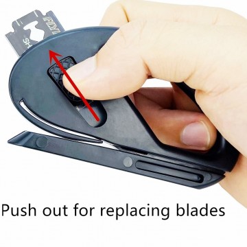 Doordat het mesje geïntegreerd is in de houder zijn de mesjes makkelijk en veilig te wisselen.