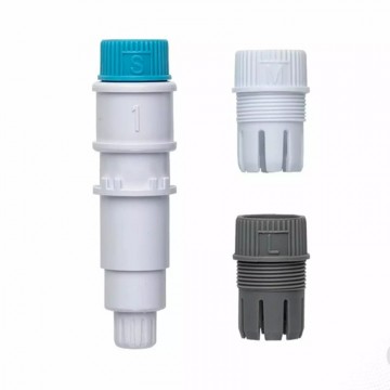 3x schroefdraad adapters voor verschillende pengroottes – klein (blauw), gemiddeld (wit) en groot (grijs)